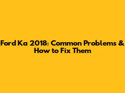 Ford Ka 2018 Engine Troubles: What to Watch Out For