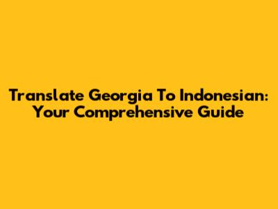 Translate Georgia To Indonesian: Your Comprehensive Guide
