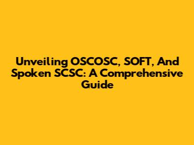 Unveiling OSCOSC, SOFT, And Spoken SCSC: A Comprehensive Guide