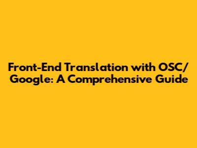 Understanding the Basics: OSC, Google Translate, and Front-End Development