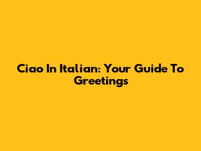 Ciao In Italian: Your Guide To Greetings
