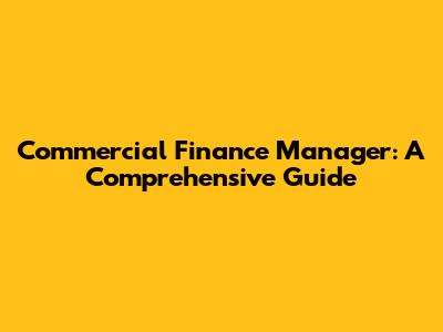 Commercial Finance Manager: A Comprehensive Guide