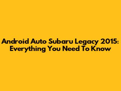 Android Auto Subaru Legacy 2015: Everything You Need To Know