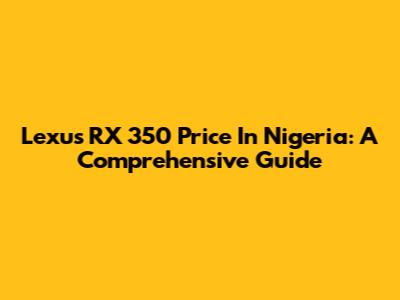 Lexus RX 350 Price In Nigeria: A Comprehensive Guide