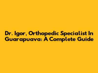 Dr. Igor, Orthopedic Specialist In Guarapuava: A Complete Guide