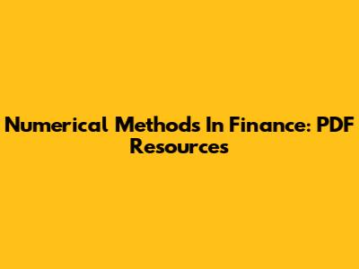 Numerical Methods In Finance: PDF Resources