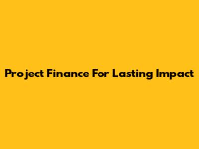 Project Finance For Lasting Impact
