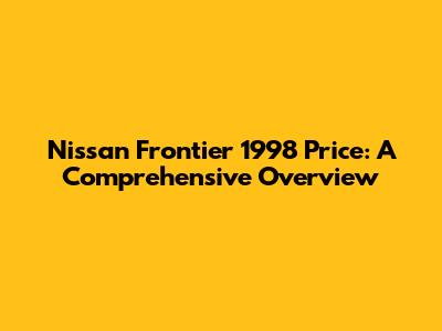 Nissan Frontier 1998 Price: A Comprehensive Overview