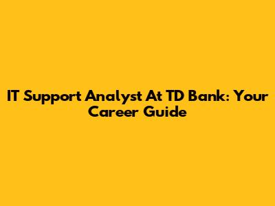IT Support Analyst At TD Bank: Your Career Guide