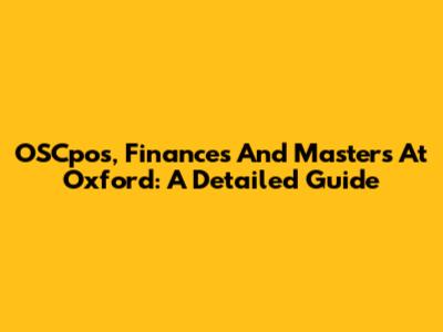 OSCpos, Finances And Master's At Oxford: A Detailed Guide