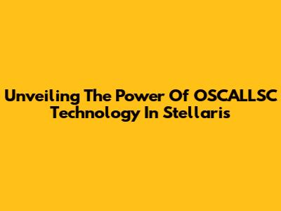 Unveiling The Power Of OSCALLSC Technology In Stellaris