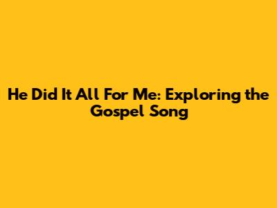 The lyrics of "He Did It All For Me" are often simple yet profound, reflecting the simplicity and depth of the gospel message. Each verse typically focuses on a different aspect of Christ's sacrifice and its implications for believers. For example, one verse may highlight the suffering that Jesus endured on the cross, while another may emphasize the victory over death and sin achieved through His resurrection. The chorus then serves as a powerful declaration of faith, affirming that Jesus did everything necessary for salvation. The phrase "He did it all for me" is repeated throughout the song, reinforcing the personal and intimate nature of Christ's love. The lyrics often evoke vivid imagery, painting a picture of Christ's sacrifice and its transformative power. They may speak of the crown of thorns, the nails in His hands and feet, or the blood that He shed for the remission of sins. These images serve to remind listeners of the immense cost of their salvation and the depth of Christ's love. The lyrics of gospel songs like "He Did It All For Me" often draw inspiration from scripture, weaving together biblical themes and narratives. In addition to their theological content, the lyrics of "He Did It All For Me" often express a deep sense of gratitude and adoration for Christ. They may include phrases such as "Thank you, Lord" or "I am forever grateful," reflecting the believer's heartfelt response to God's grace. The repetition of these phrases serves to amplify the emotional impact of the song, creating a powerful expression of worship and praise. The message is clear: He Did It All For Me. Overall, the lyrics of "He Did It All For Me" are a testament to the power of simple language to convey profound truths. They offer a clear and concise summary of the gospel message, inviting listeners to reflect on the sacrifice of Christ and its implications for their lives.