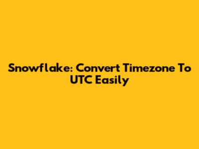 Snowflake: Convert Timezone To UTC Easily