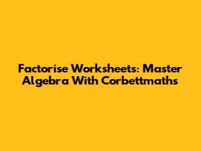 Factorise Worksheets: Master Algebra With Corbettmaths
