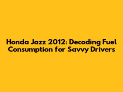 Understanding the Basics: Honda Jazz 2012 Fuel Efficiency