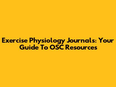 Exercise Physiology Journals: Your Guide To OSC Resources