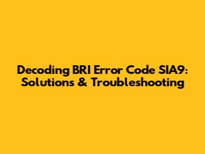 Decoding BRI Error Code SIA9: Solutions & Troubleshooting