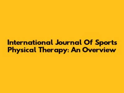 International Journal Of Sports Physical Therapy: An Overview