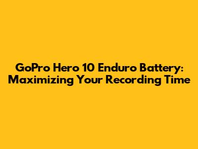 GoPro Hero 10 Enduro Battery: Maximizing Your Recording Time