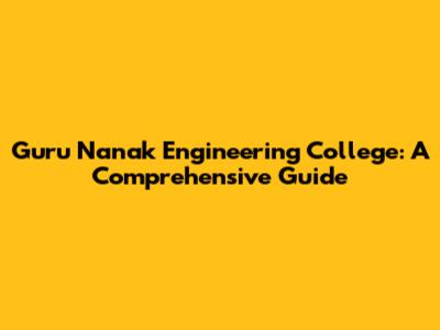 Guru Nanak Engineering College: A Comprehensive Guide