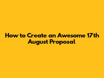 Why a Solid 17th August Proposal Matters