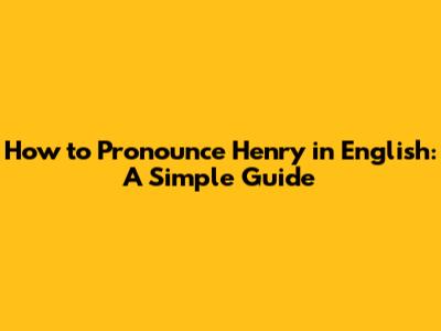 Breaking Down the Pronunciation of Henry