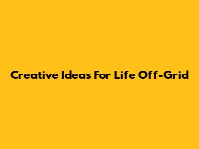 Creative Ideas For Life Off-Grid