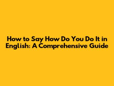 Conclusion: Mastering "How Do You Do It" in English