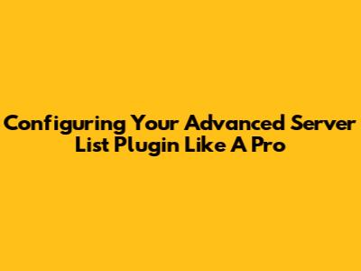 Configuring Your Advanced Server List Plugin Like A Pro