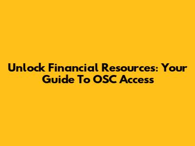 Unlock Financial Resources: Your Guide To OSC Access