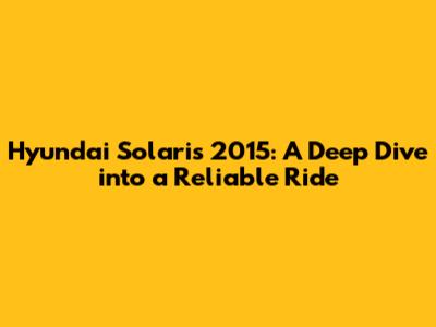 Hey guys! Let's talk about the Hyundai Solaris 2015. This car has been a popular choice for many, and for good reason. It’s reliable, affordable, and practical, making it a solid option for daily commutes and more. In this article, we’ll dive deep into what makes the Solaris 2015 tick, covering everything from its performance and features to its common issues and maintenance tips. Whether you’re considering buying one or already own one, this guide is for you.
