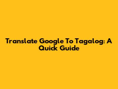 Translate Google To Tagalog: A Quick Guide