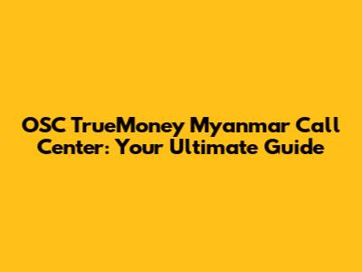 OSC TrueMoney Myanmar Call Center: Your Ultimate Guide