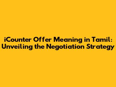 Hey folks, ever found yourself in a negotiation where things are going back and forth? You might have stumbled upon the term "iCounter Offer." Let's break down the iCounter offer meaning in Tamil, and how it plays out in the game of bargaining. In simple terms, an iCounter offer is a response to an offer, where the receiver proposes a different set of terms. This could involve a change in price, delivery dates, or any other aspect of the original proposal. This is a common tactic in Tamil Nadu, where negotiation is often a part of everyday life, from buying vegetables at the market to closing a deal on a new property. So, understanding the iCounter offer is pretty darn important.