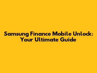 Samsung Finance Mobile Unlock: Your Ultimate Guide