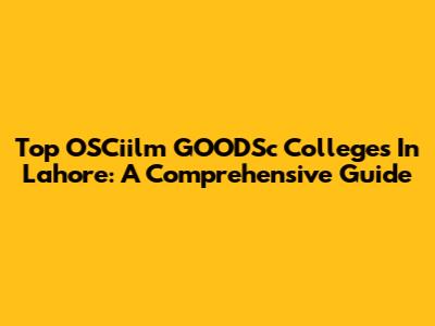 Top OSCiilm GOODSc Colleges In Lahore: A Comprehensive Guide