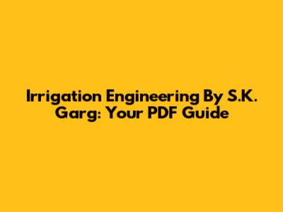 Irrigation Engineering By S.K. Garg: Your PDF Guide