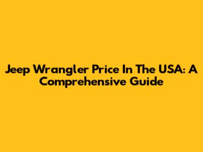 Jeep Wrangler Price In The USA: A Comprehensive Guide