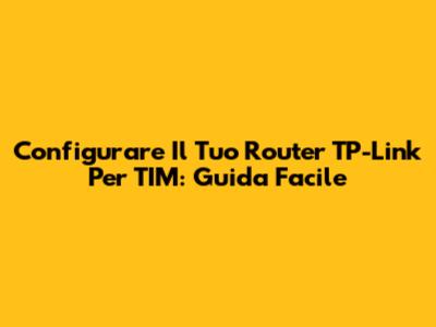 Configurare Il Tuo Router TP-Link Per TIM: Guida Facile