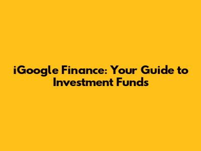 Hey everyone! Ever felt a bit lost when it comes to iGoogle Finance and investment funds? You're not alone, guys. Navigating the world of investments can feel like trying to read a map in the dark sometimes, right? Well, get ready to shed some light because we're diving deep into how iGoogle Finance can be your trusty sidekick in understanding and choosing investment funds. We'll break down what these funds are, why they matter, and how iGoogle Finance can help you keep tabs on them without making your head spin. So, grab a coffee, settle in, and let's make sense of it all together!