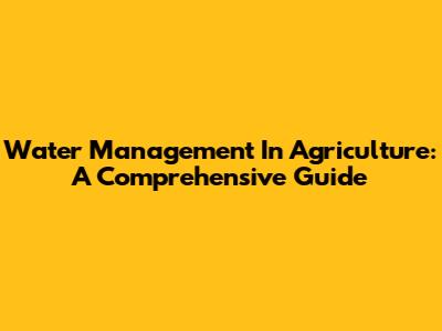 Water Management In Agriculture: A Comprehensive Guide
