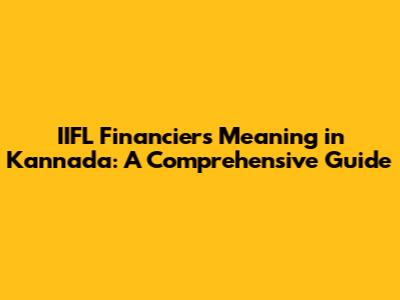 Hey guys, ever stumbled upon the term "IIFL financiers" and wondered what it actually means, especially in the context of Kannada? You're in the right place! Let's break down this financial jargon and make it super clear for everyone. Essentially, IIFL financiers refers to the financial services provided by India Infoline Finance Limited (IIFL). When we talk about this in Kannada, it translates to "ಐಐಎಫ್ಎಲ್ ಹಣಕಾಸುದಾರರು" (Aiyaiyephl Haṇakacudāraru), which broadly means entities or individuals associated with IIFL that provide financial assistance or loans. It's crucial to understand this because IIFL is a big player in the Indian financial landscape, offering a wide array of services from loans and investments to insurance and wealth management. Knowing what IIFL financiers are in Kannada helps you navigate these services more effectively if you're a Kannada speaker looking for financial solutions. This isn't just about a direct translation; it's about understanding the function and purpose of these financiers within the financial ecosystem, and how that understanding applies when communicating in Kannada.