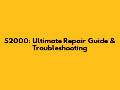S2000: Ultimate Repair Guide & Troubleshooting