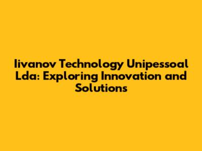 Iivanov Technology Unipessoal Lda represents a dynamic force in the tech industry, dedicated to delivering innovative solutions and driving technological advancement. In this article, we'll explore the core values, mission, and impact of Iivanov Technology, highlighting its contributions and commitment to excellence. Let's dive in and discover what makes Iivanov Technology a key player in today's technology landscape.