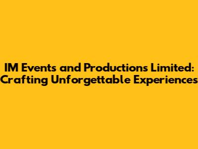 Hey guys! Ever been to an event that just wowed you? The kind where you're buzzing for days afterward, telling everyone about it? Well, chances are, there's a team of dedicated professionals behind the scenes making that magic happen. And today, we're diving deep into one such team: IM Events and Productions Limited. We'll explore what makes them tick, the kinds of events they bring to life, and why they might just be the perfect partner for your next big project. Let's get started!