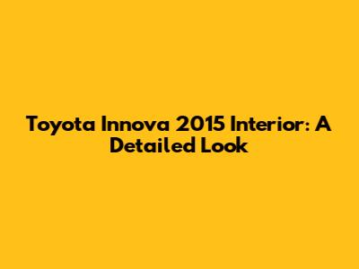 Toyota Innova 2015 Interior: A Detailed Look