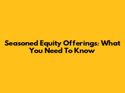 Seasoned Equity Offerings: What You Need To Know
