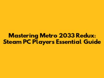 Mastering Metro 2033 Redux: Steam PC Player's Essential Guide