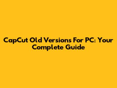 CapCut Old Versions For PC: Your Complete Guide