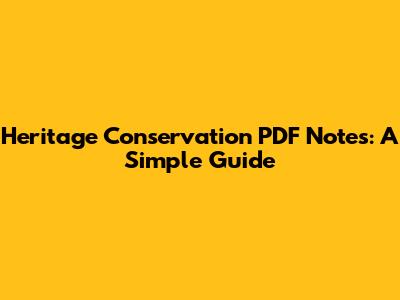 Heritage Conservation PDF Notes: A Simple Guide